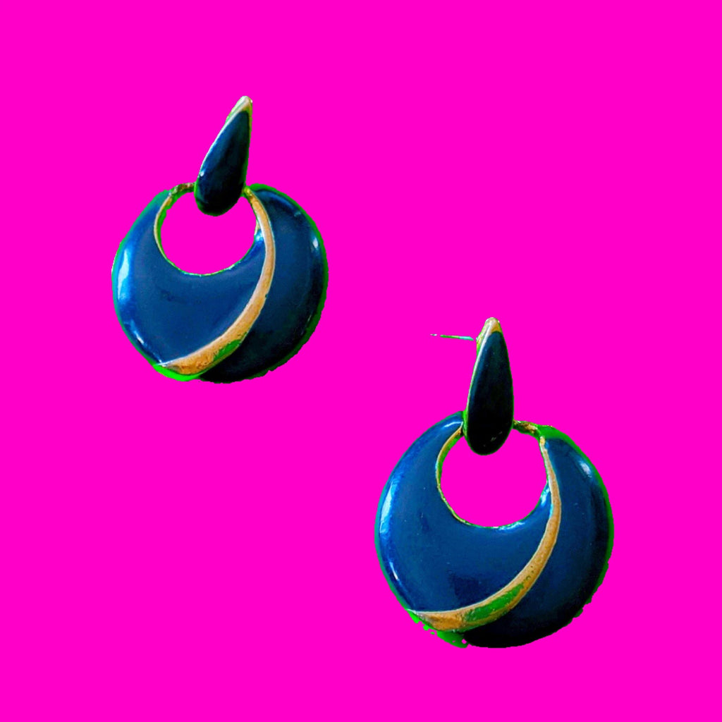 Beautiful luxe glossy navy blue enamel is so pretty on these classic retro earrings!